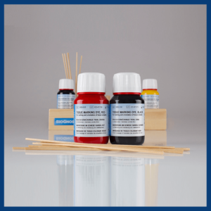 Les colorants de marquage tissulaire sont utilisés dans le marquage et l’orientation d’échantillons de tissus pour le traitement histopathologique. Seuls les tissus retirés peuvent être marqués. Les pigments colorants peuvent créer des taches permanentes sur les tissus vivants, c’est pourquoi le colorant ne doit pas être appliqué sur les patients vivants.